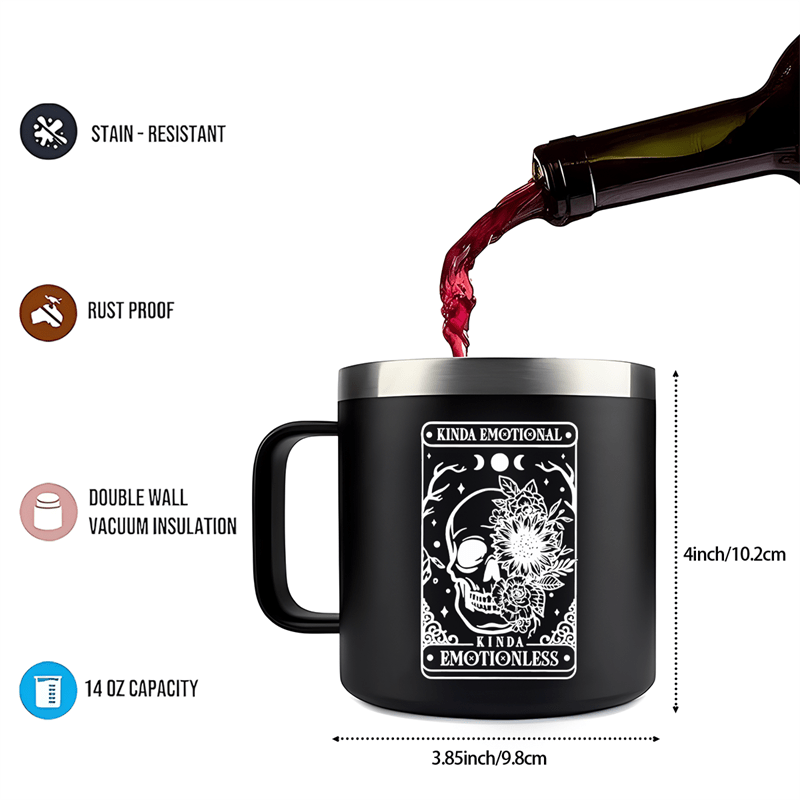14oz Stainless Steel Insulated Mug with Skull Design - Double-Walled, Splash-Proof, Reusable Coffee Cup for Men & Women - Perfect for Car, Outdoor Camping, Travel | Unique Gift Idea