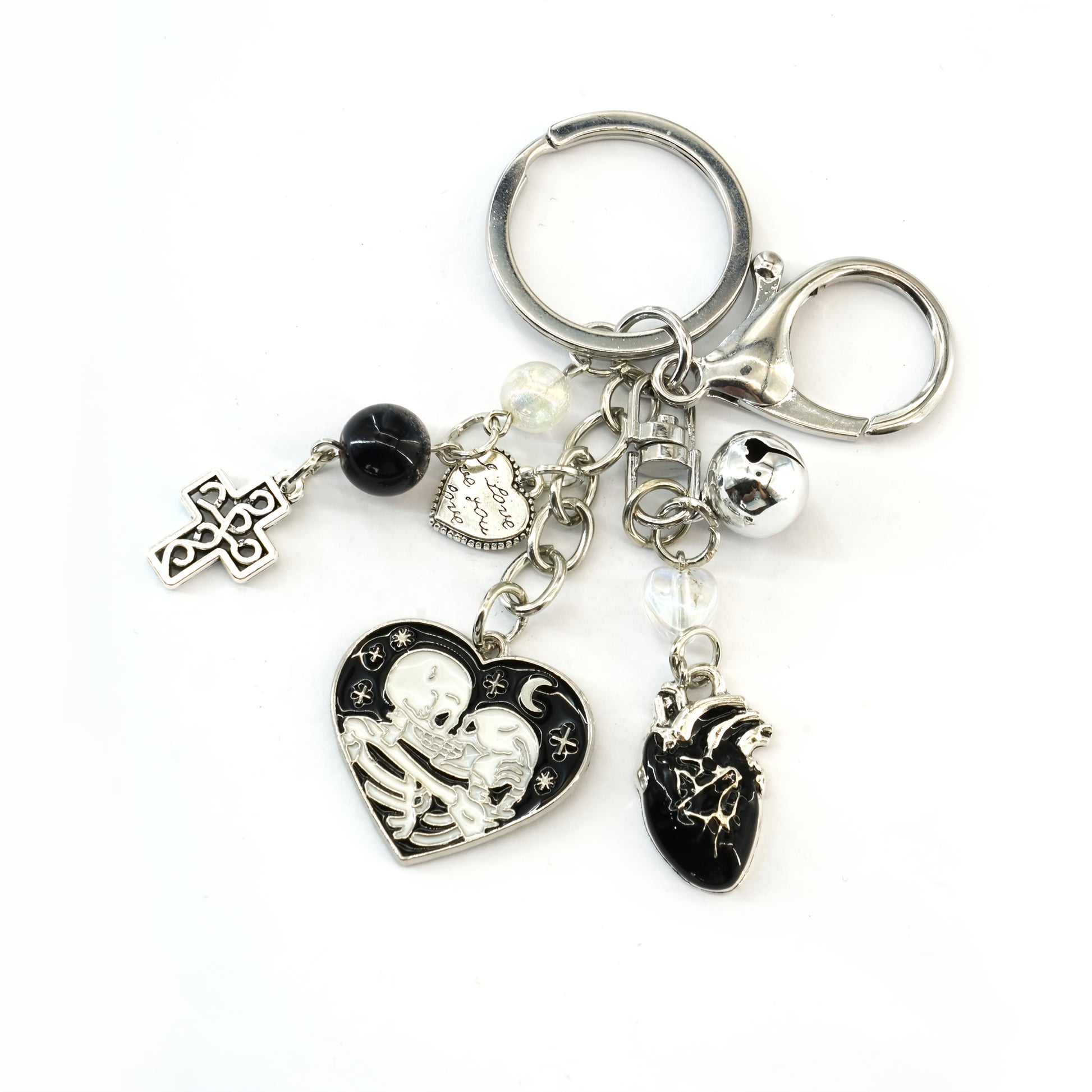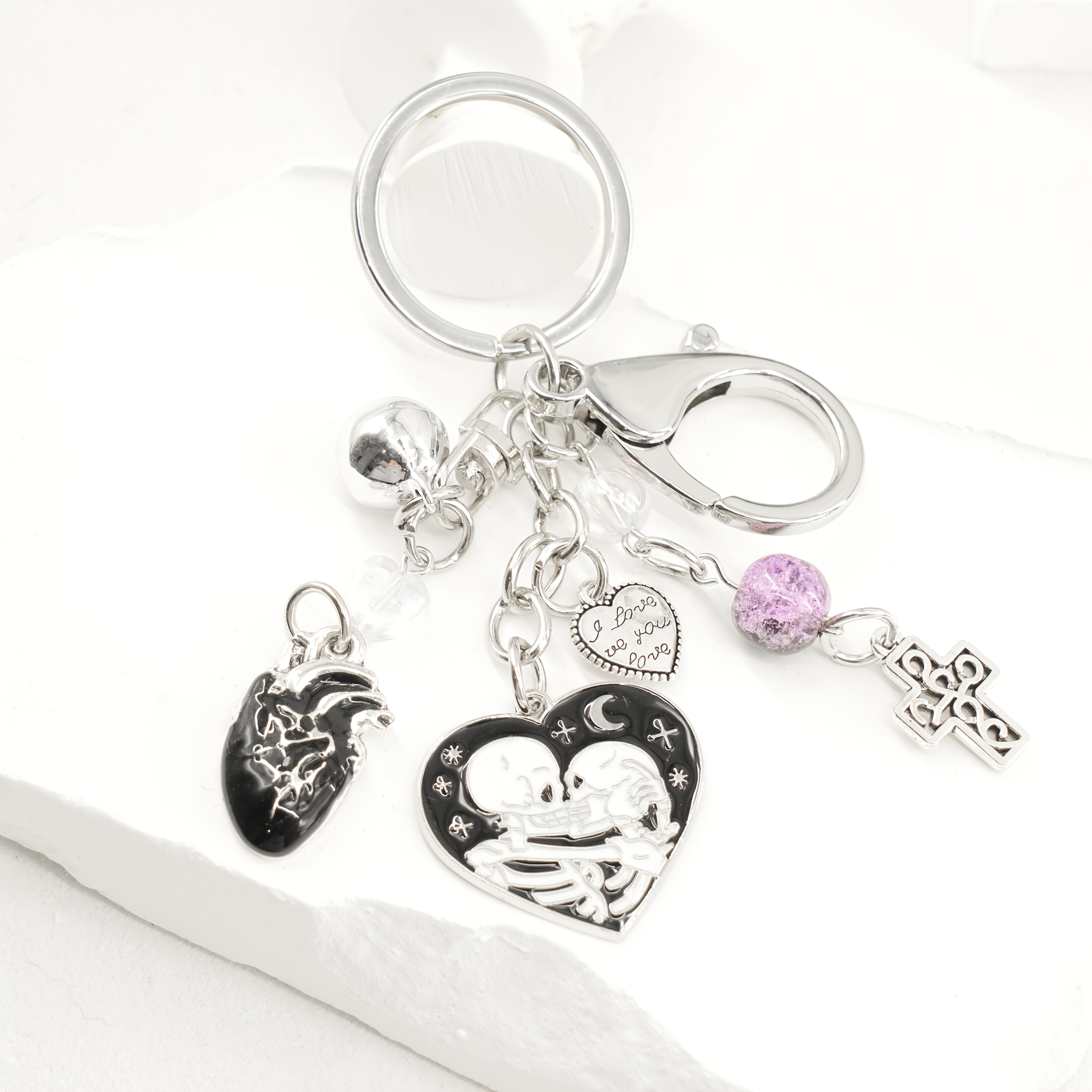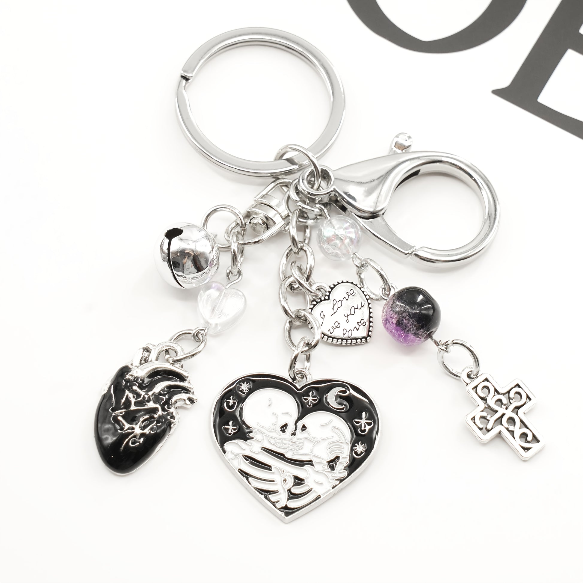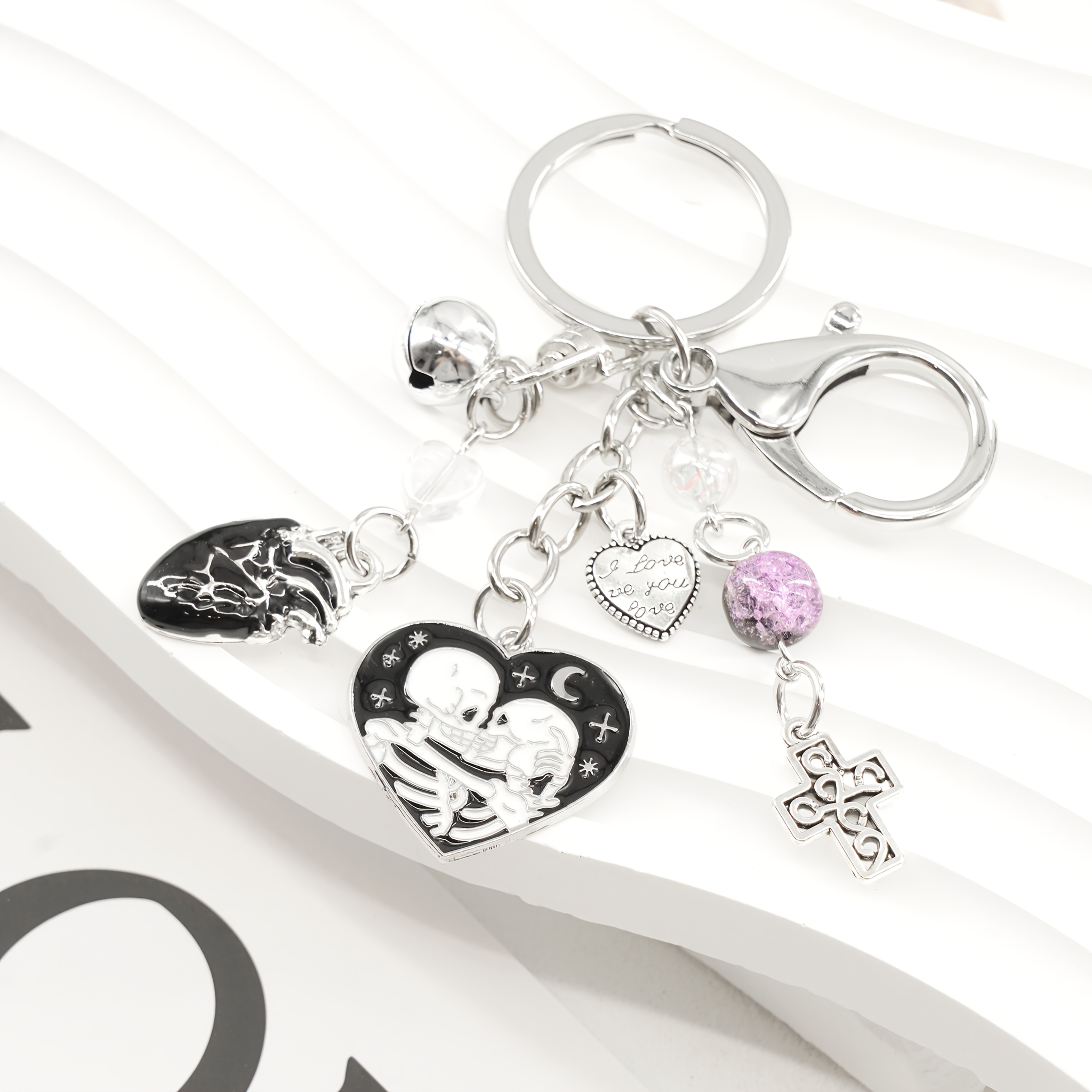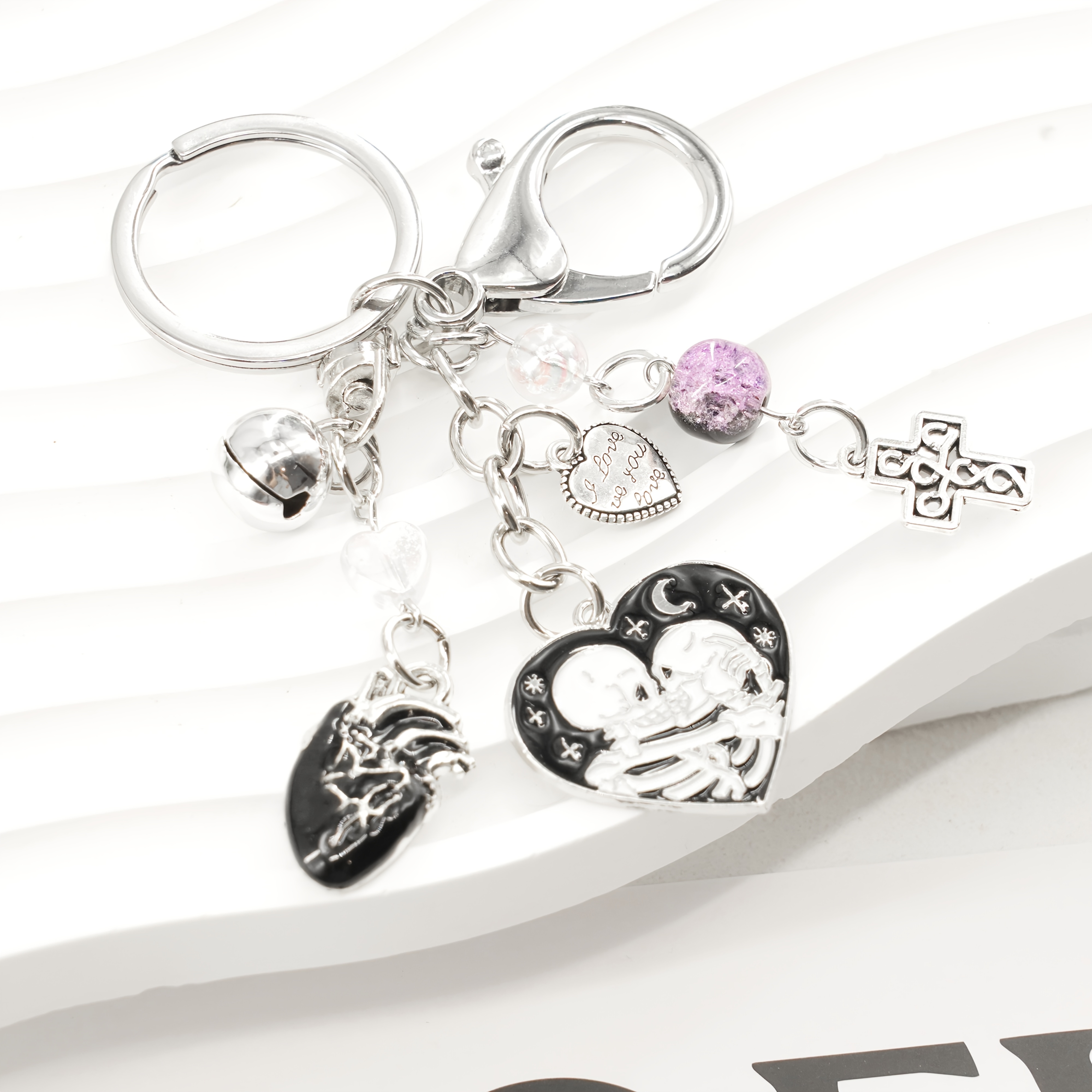 1pc Gothic Dark Keychain with Heart Cross Skull Pendant - Zinc Alloy Key Ring for Halloween, Dark Theme Party Accessories, Bag & Wallet Charm, Unique Gift for Friends, Halloween Accessories, Halloween Decorations, Halloween,