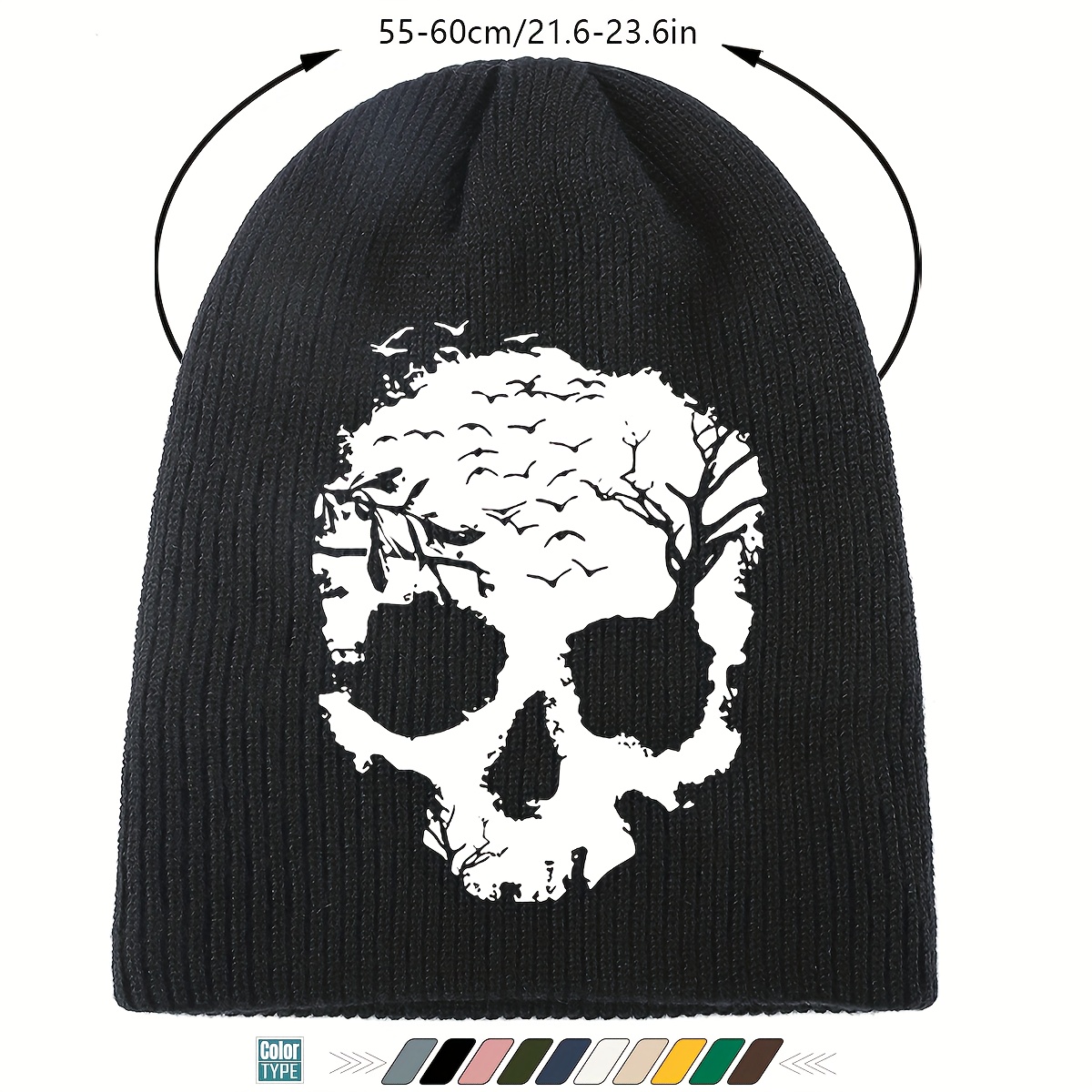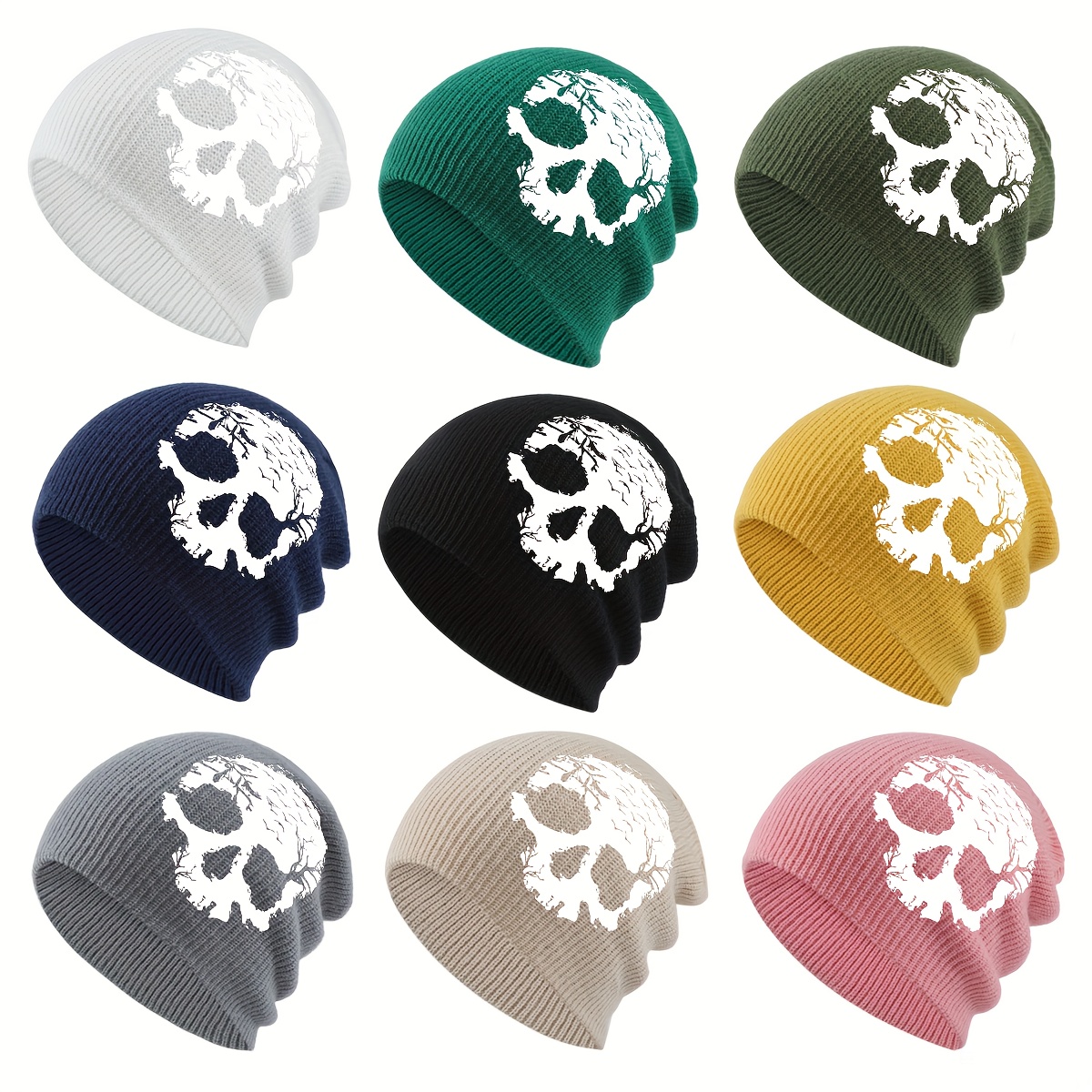1pc Gothic Skull Print Beanie Hat - Soft Stretchy Winter Skull Cap with Elastic Band, Lightweight Warm Unisex Beanie for Men & Women, Gothic Style for Halloween, Christmas, Casual Attire - Black, Grey, Yellow, Pink, White & M