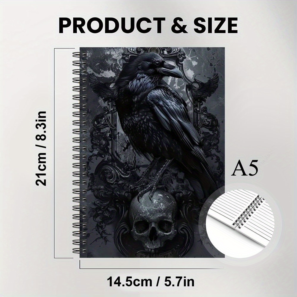 1pc Gothic Spiral Notebook - Dark Academia Journal with Raven & Skull, Gothic Writing Planner, Compact Notebook for Halloween, Gothic Decor, Everyday Use - Ideal for Students, Writers, Dark Fantasy Gifts, Diary Planner, Vinta