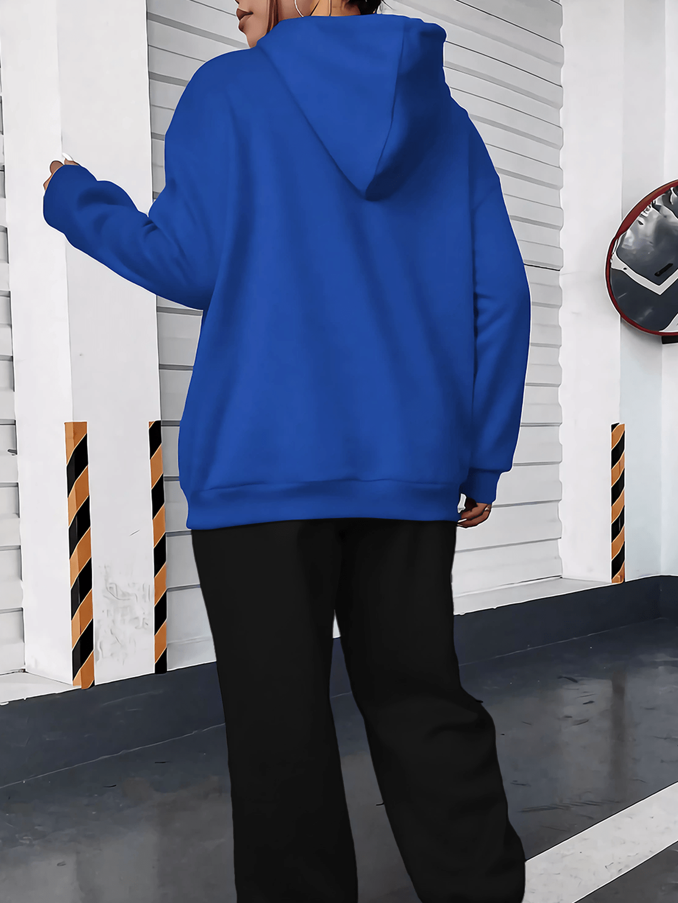 2024 Women's Navy Blue Hoodie & Jogger Set with Camo Bow Detail - Casual Long Sleeve, 100% Polyester Outfit, Machine Washable, Perfect for Fall/Winter
