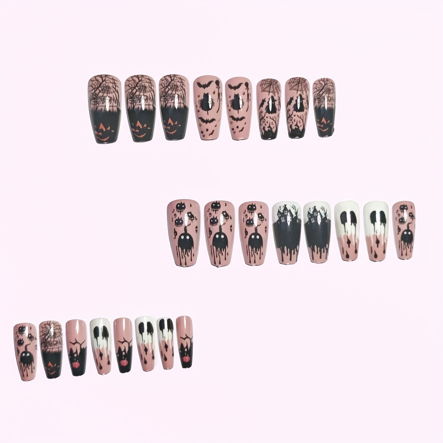 24pcs Halloween Gothic Style Witch Bat Pumpkin Lantern Removable Nail Art Set
