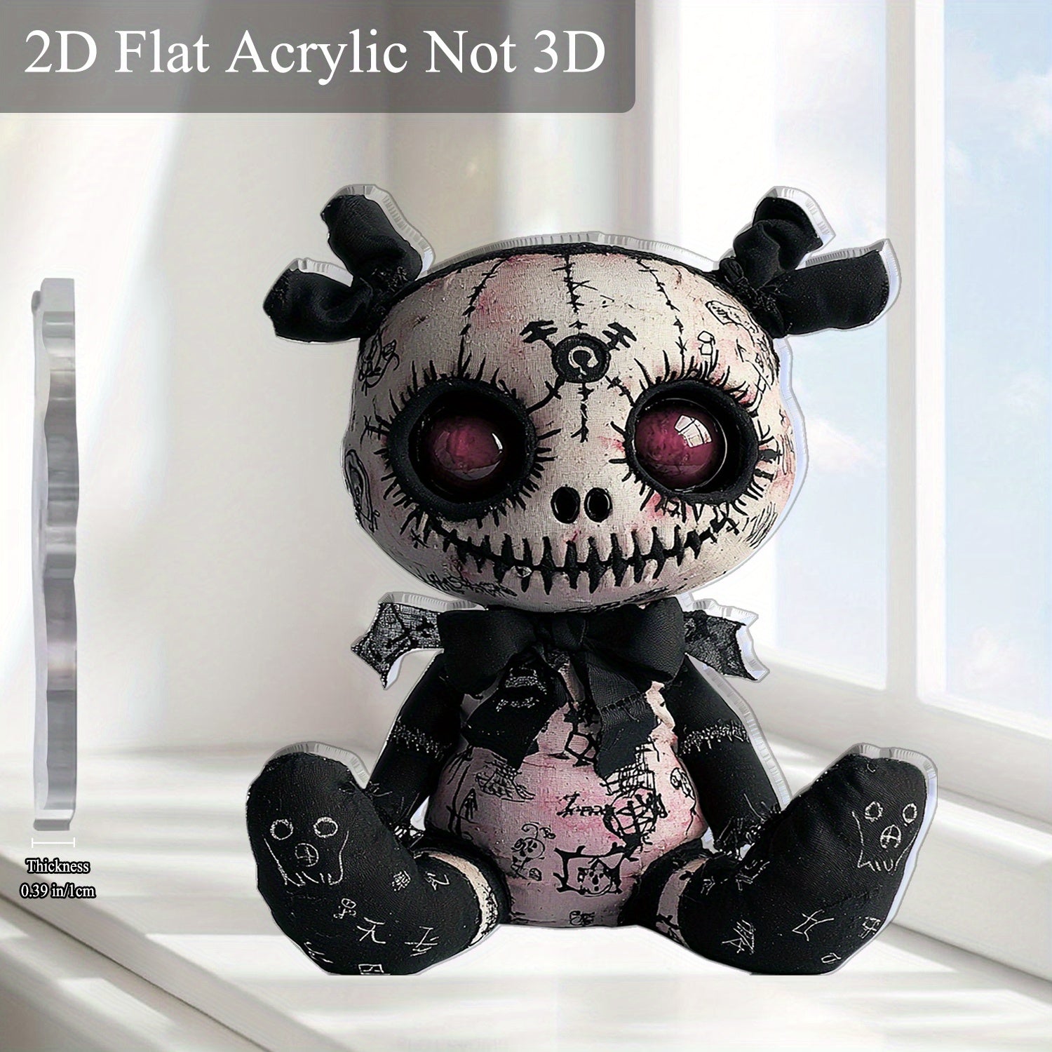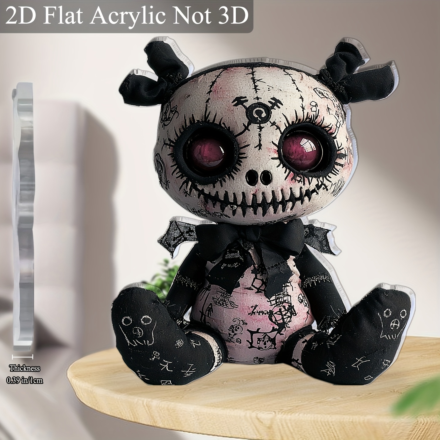 2D Flat, 1pc Horror-Themed Plush Toy Acrylic Desktop Decoration - Gothic Spooky Halloween Decor, 5.91"x5.11" 2D Flat Print with Skull & Bat Design, No Batteries Needed for Office, Bar, Cafe, Friend Gift, 2D Flat