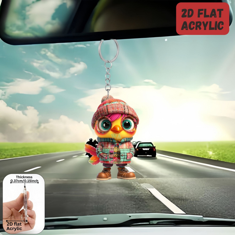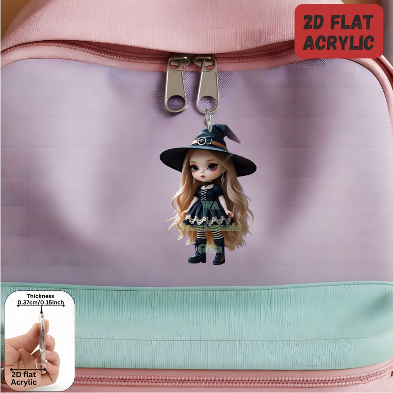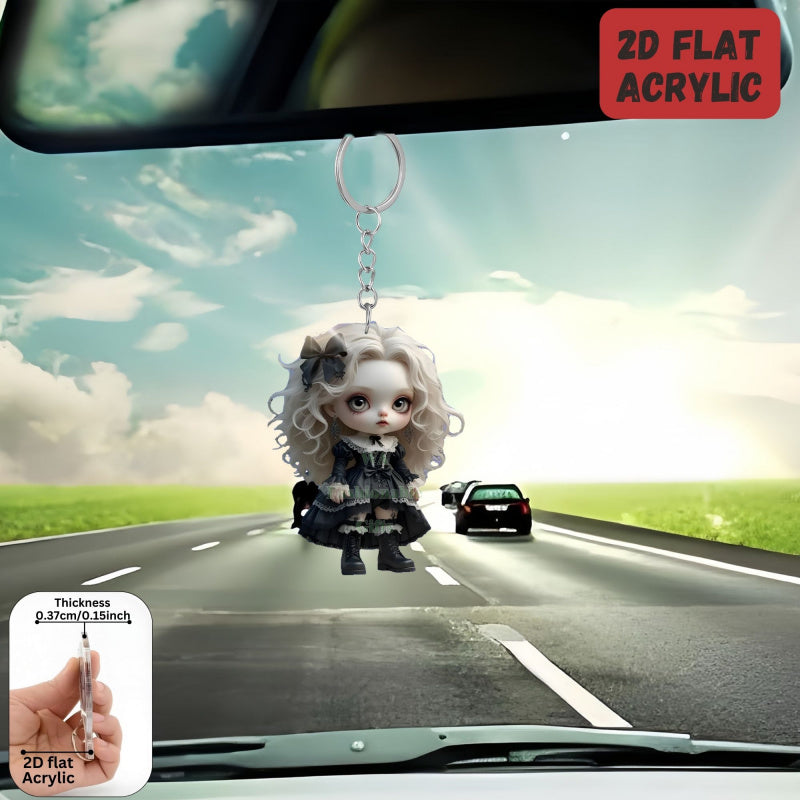 2D Flat, 1pc or 6pcs Gothic Horror Doll Keychain - Cute Gothic with Expressive Eyes, Flat 2D Flat Design with Black Hair & White Face Paint - Compatible with Backpacks, Cars, Phones, Keys - Spooky Accessory for Halloween, Chr