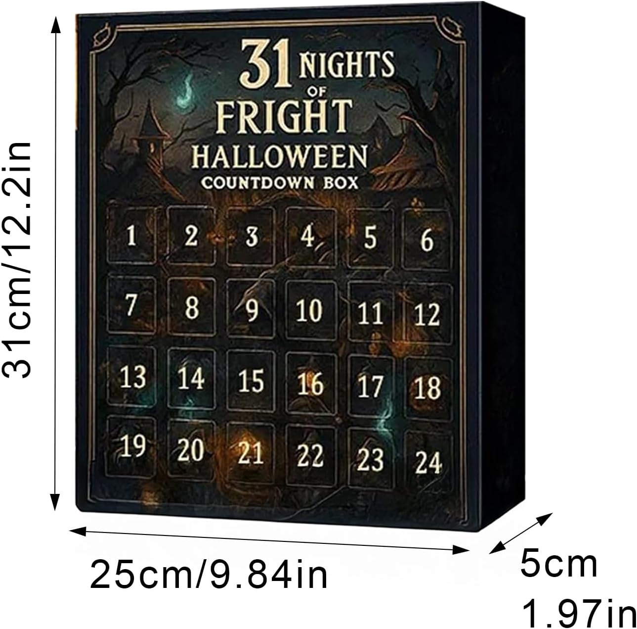 31 Nights of Fright- Halloween Countdown Box with Figurines, Halloween Advent Calendar 2025 Box, Scary Collectible Horror Figures, Hanging Charms& Decorations(31 days), Halloween Decorations, Halloween Decor, Spooky Countdown