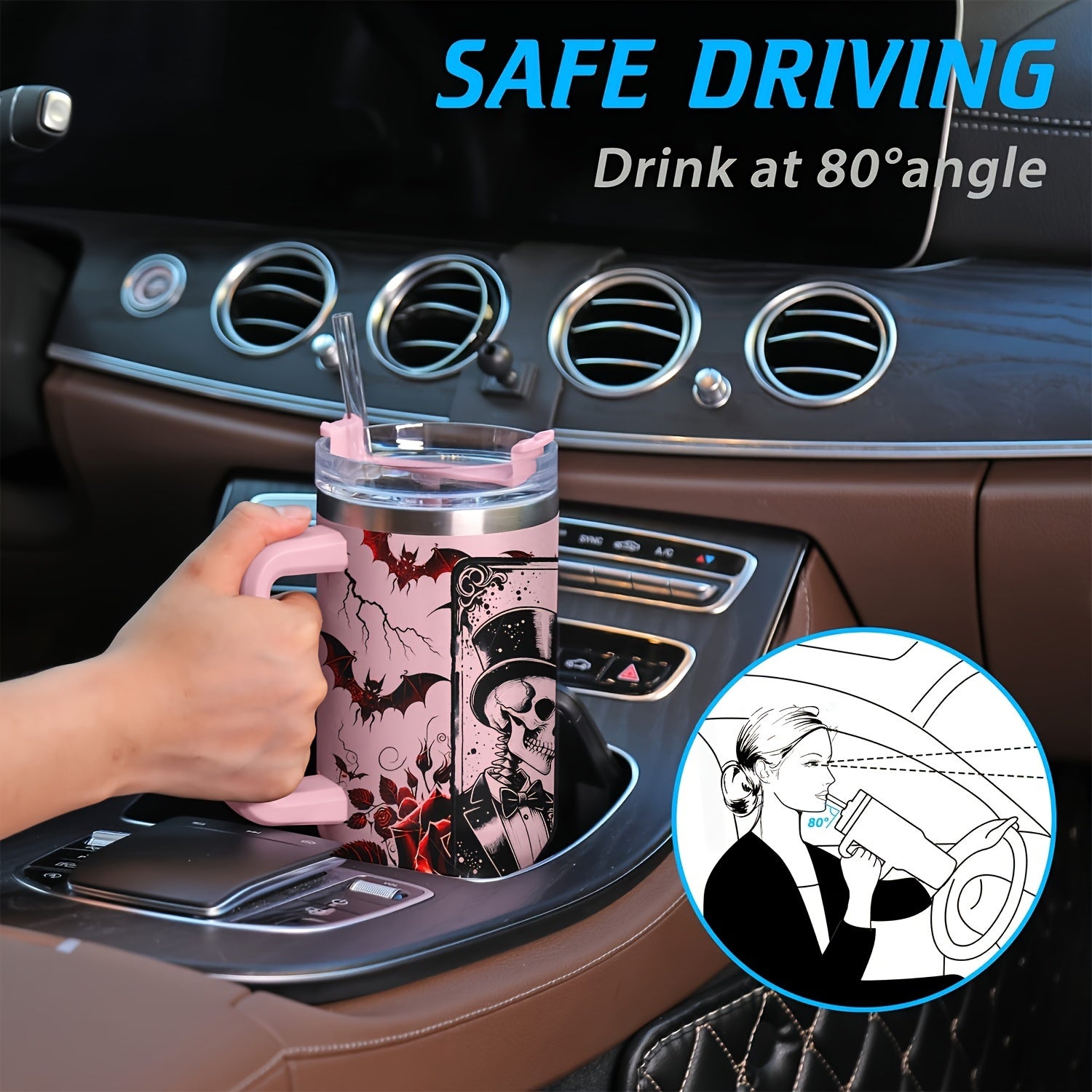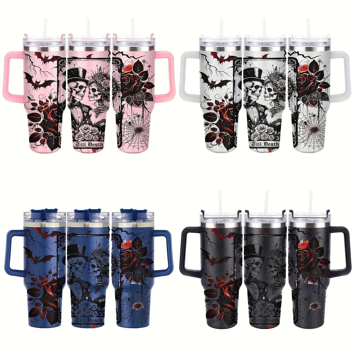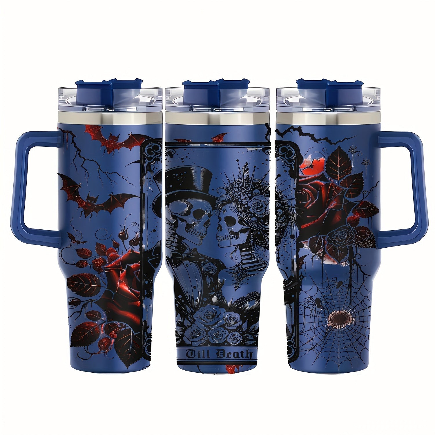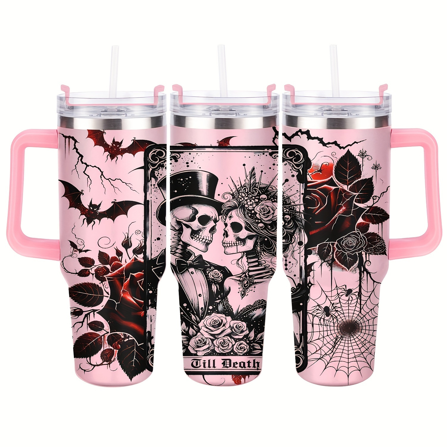 40oz Stainless Steel Tumbler with Lid - Halloween Skeleton Bride Design, Reusable & Hand-Wash Only, Perfect for Car Travel & Gifts