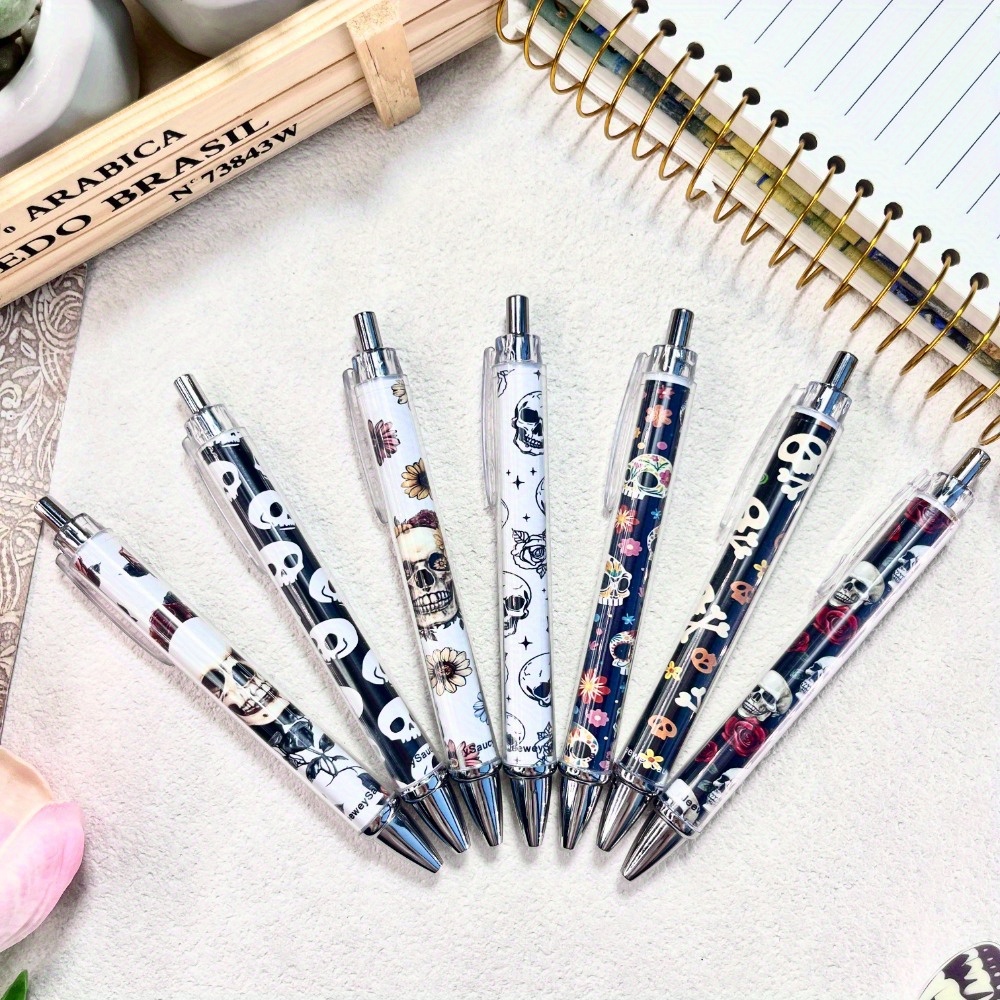 7pcs 7pcs Day of the Dead Skull Magnetic Gift Round Ballpoint Pen - Skull Flower Reading Black Ink Writing Pen, Suitable for Women Book Lovers Office Teachers Writing Supplies