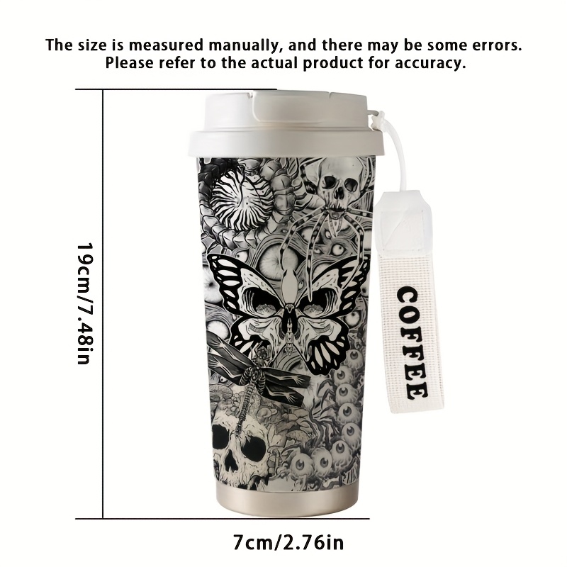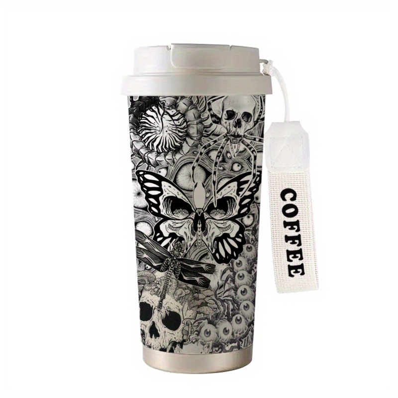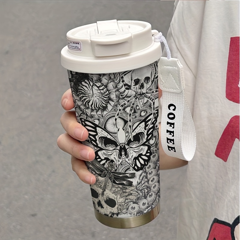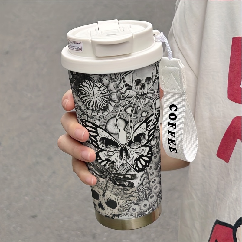 A 17.92oz Creepy Red Green Element Pattern Coffee Cup, Portable Dual Drink Thermos, Insulated/Cold Water Cup, Cool, Trendy, Cold/Hot Drink Cup, Suitable for Office, Travel, Sports/Outdoor Essentials, Basketball, Golf, Basebal