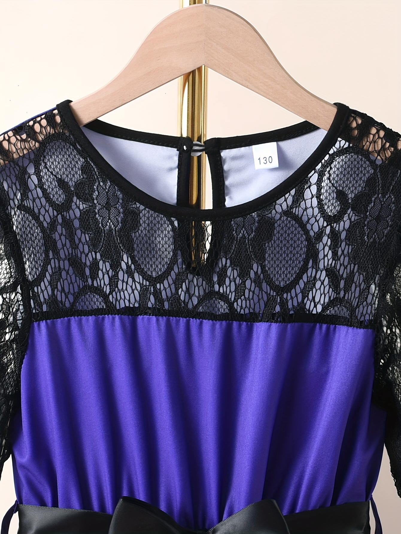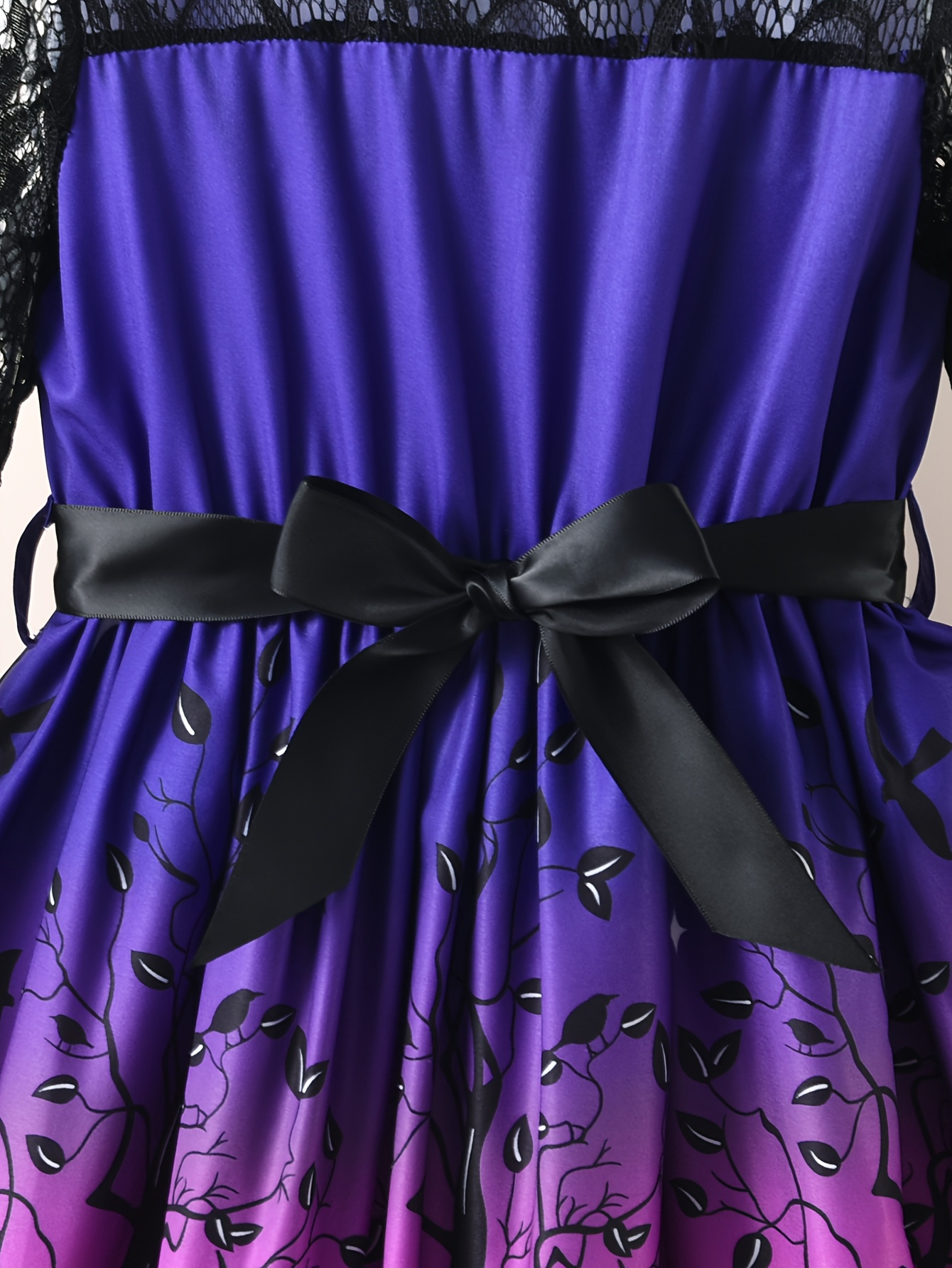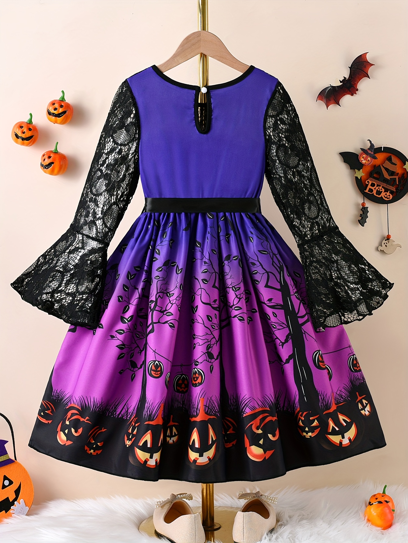 Girls' Autumn New Halloween Element Print Spliced Lace Long Sleeve + Drawstring Fashion Dress - The Best Choice for Halloween Gifts for Girls