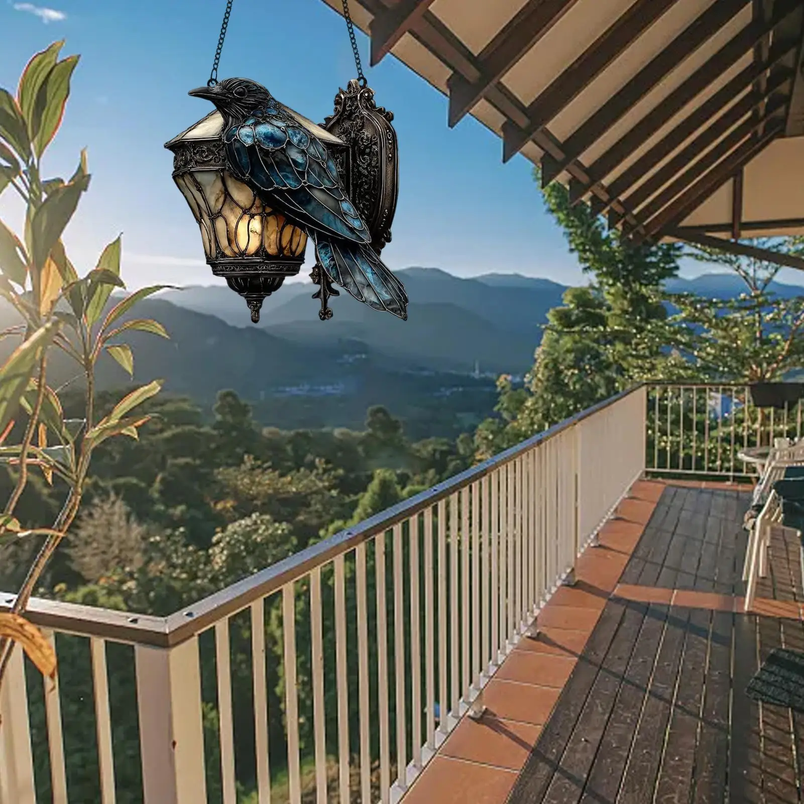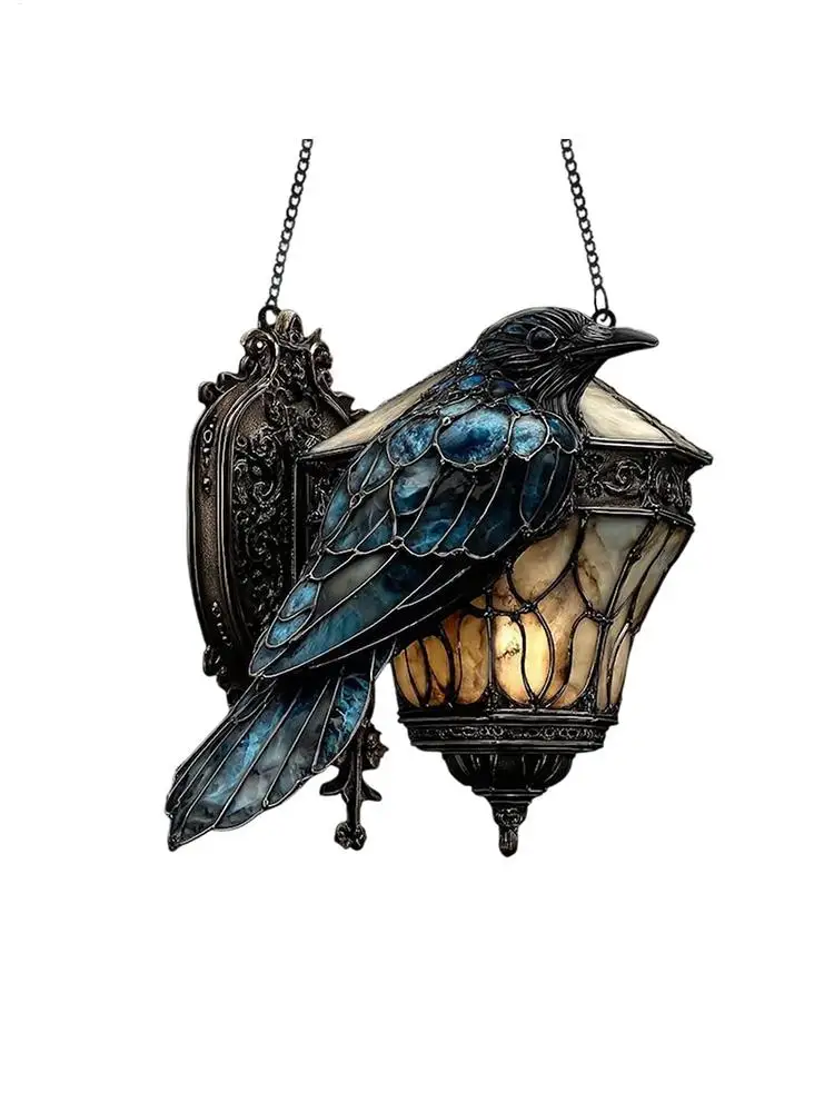 Gothic Crow on Lantern Ornament Sign 2D Acrylic Sign Halloween crow stained glass lantern Home Decorations for Holiday Party