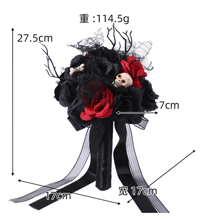 Gothic Wedding Bridal Bouquet Ghost Festival Red and Black Simulated Flowers Halloween Decoration Roses Handheld Flowers