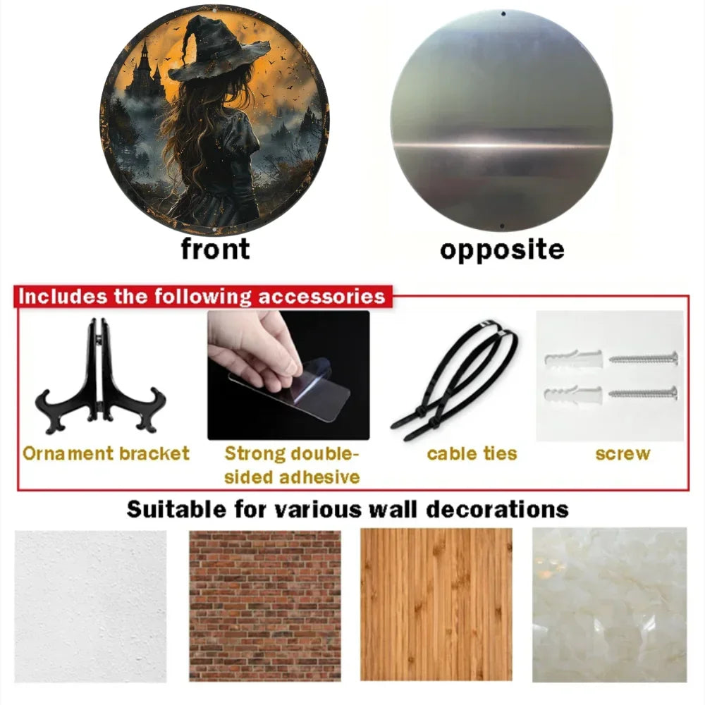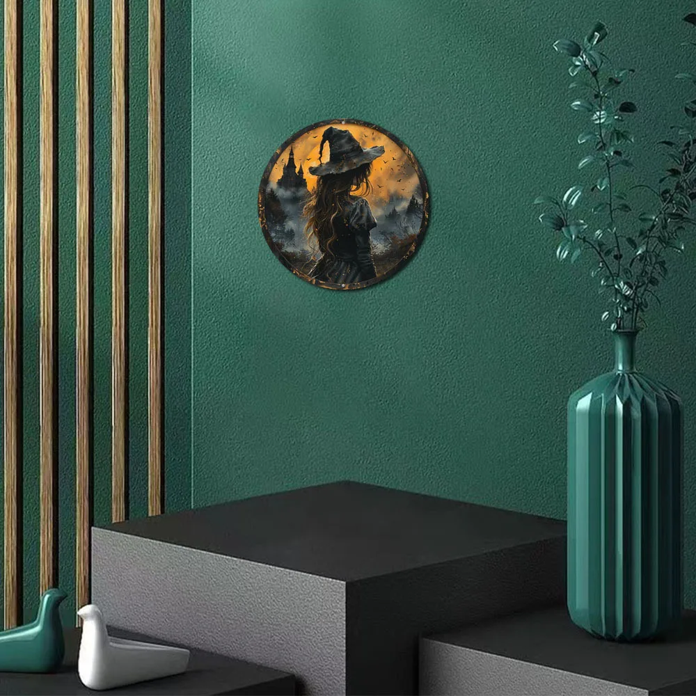 Gothic Witch Themed Art Deco, Metal Round Flat Sign, Unique Office Room, Home Door Decoration, Holiday Gift Idea, Wall Art Decor