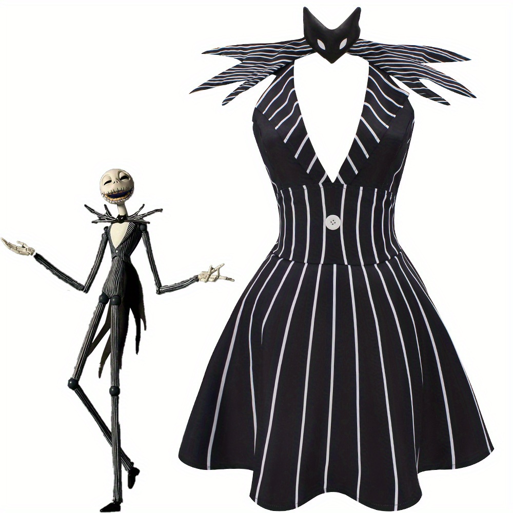 Jack Skellington Costume, Nightmare Before Christmas Item, Women'S Halloween Costume, Official Licensed Disney, Polyester Full Makeup & Party Dress, Tim-inspired Gothic Look, Complete Set For Halloween Parties, Cosplay Events