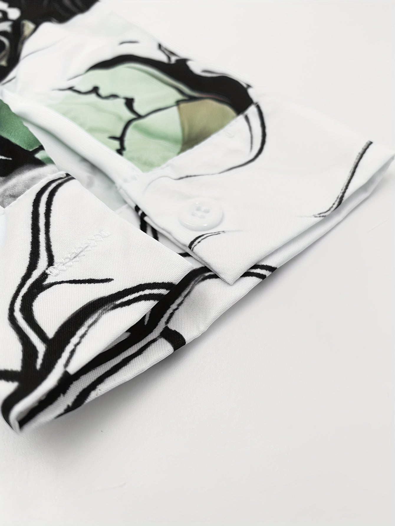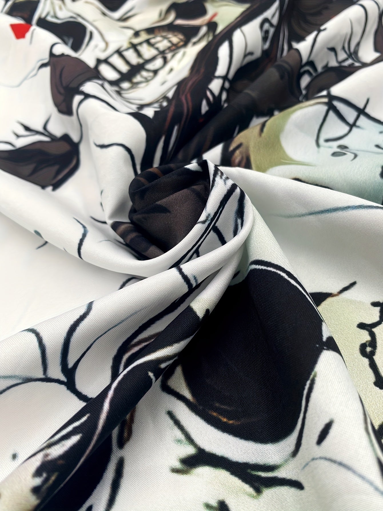 Men's Gothic 3D Printed Skull & Rose Shirt - Long Sleeve Button-Up Lapel Collar, Machine Washable All-Season Casual to Semi-Formal Wear, Black & Red Gothic Pattern with White Skulls & Red Roses, Dark Brown/Black Tones for Dai