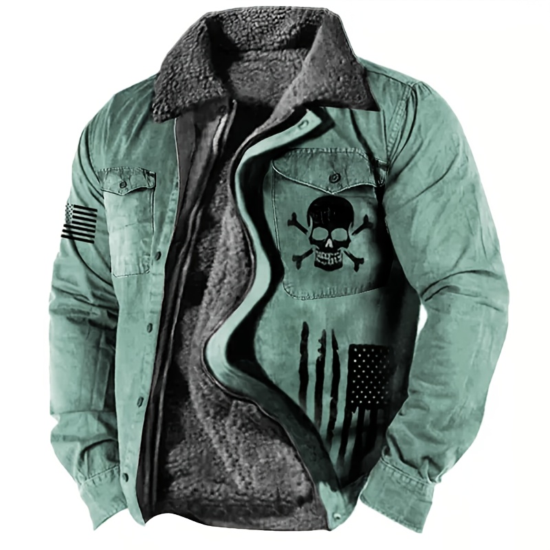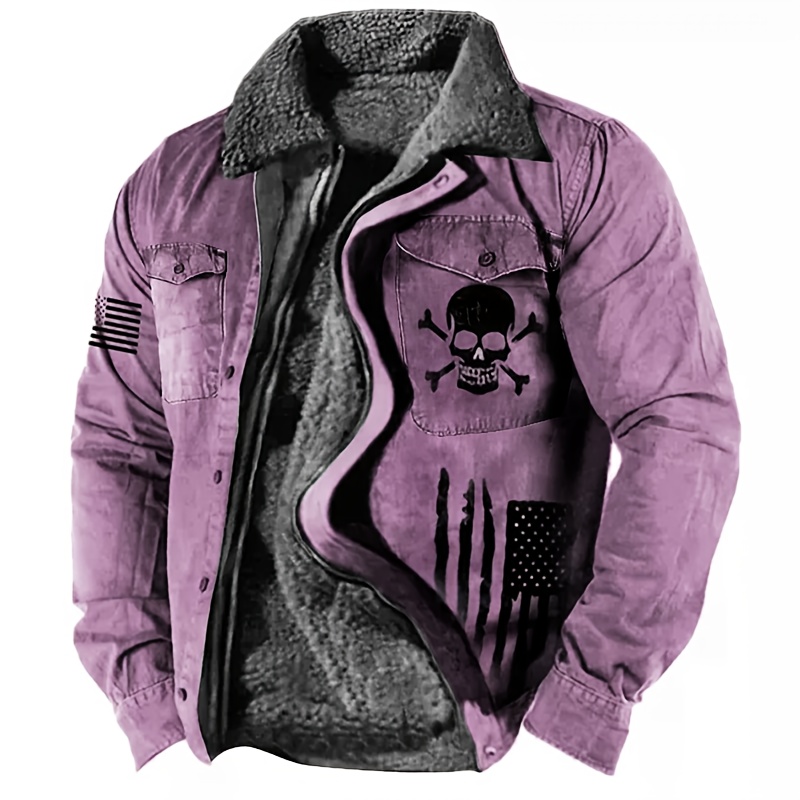 Men's Gothic Skull & Biker Jacket - Heavy-Duty Winter Coat with Full-Zip Front, Thermal Lining - Machine Washable Outerwear for Motorcycle Riding, Casual & Formal Events - Purple & Black Gothic Style Jacket with Skull Print,