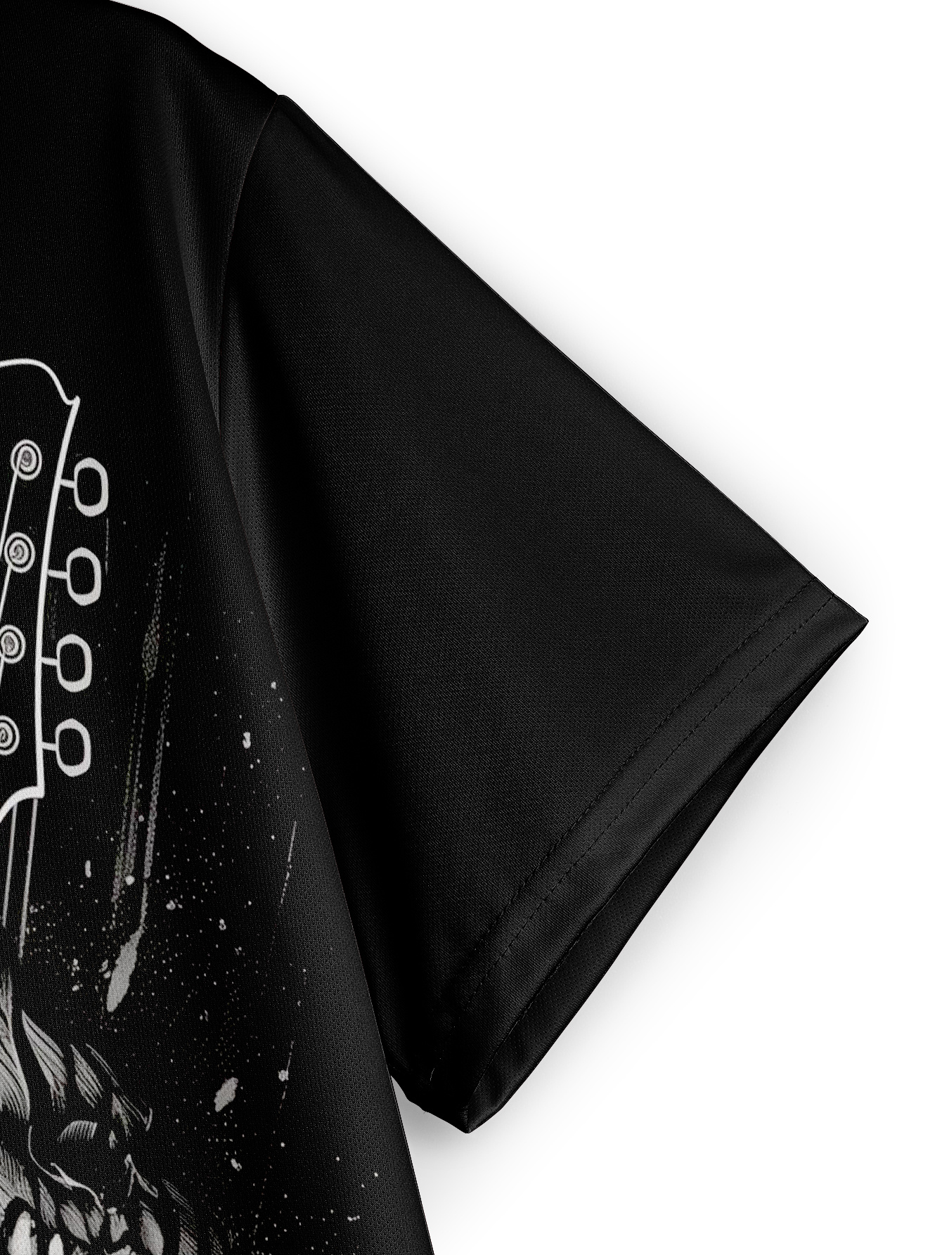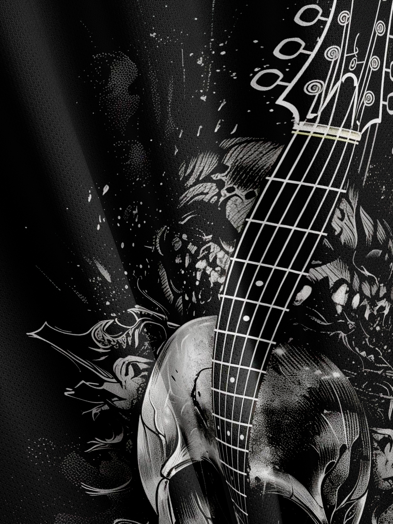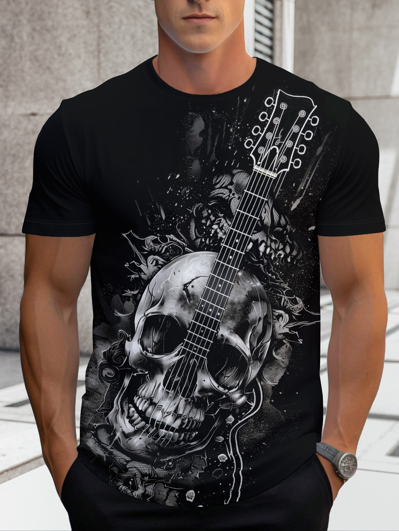 [RED SPY Rock T-Shirt] RED SPY Men's Rock Graphic T-Shirt - Black & White Skull Guitar Tee, Regular Fit Short Sleeve, Machine Washable, Hot Transfer Print, Concerts, Casual, Weekend, Edgy, Comfortable, Printed, Young Adults