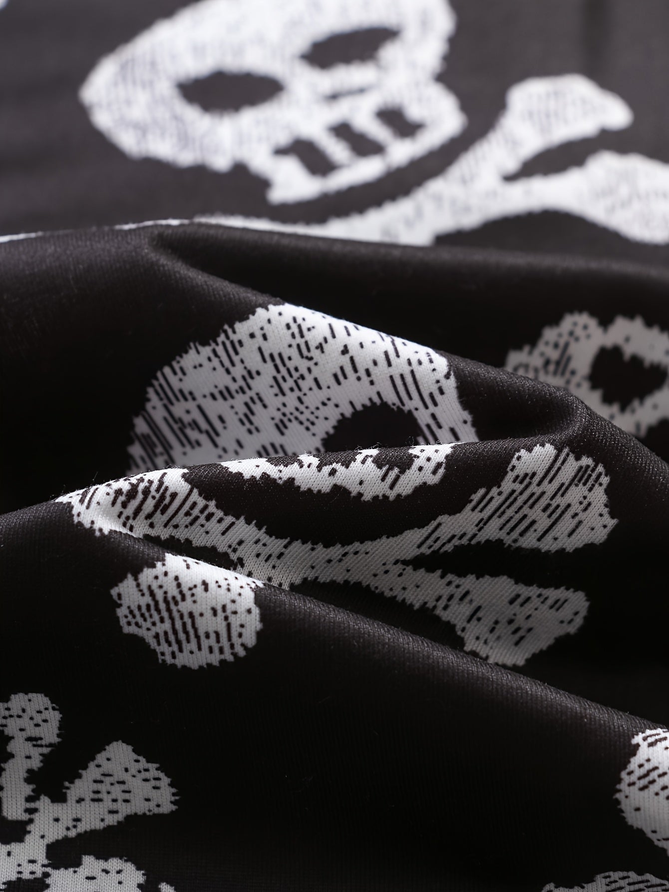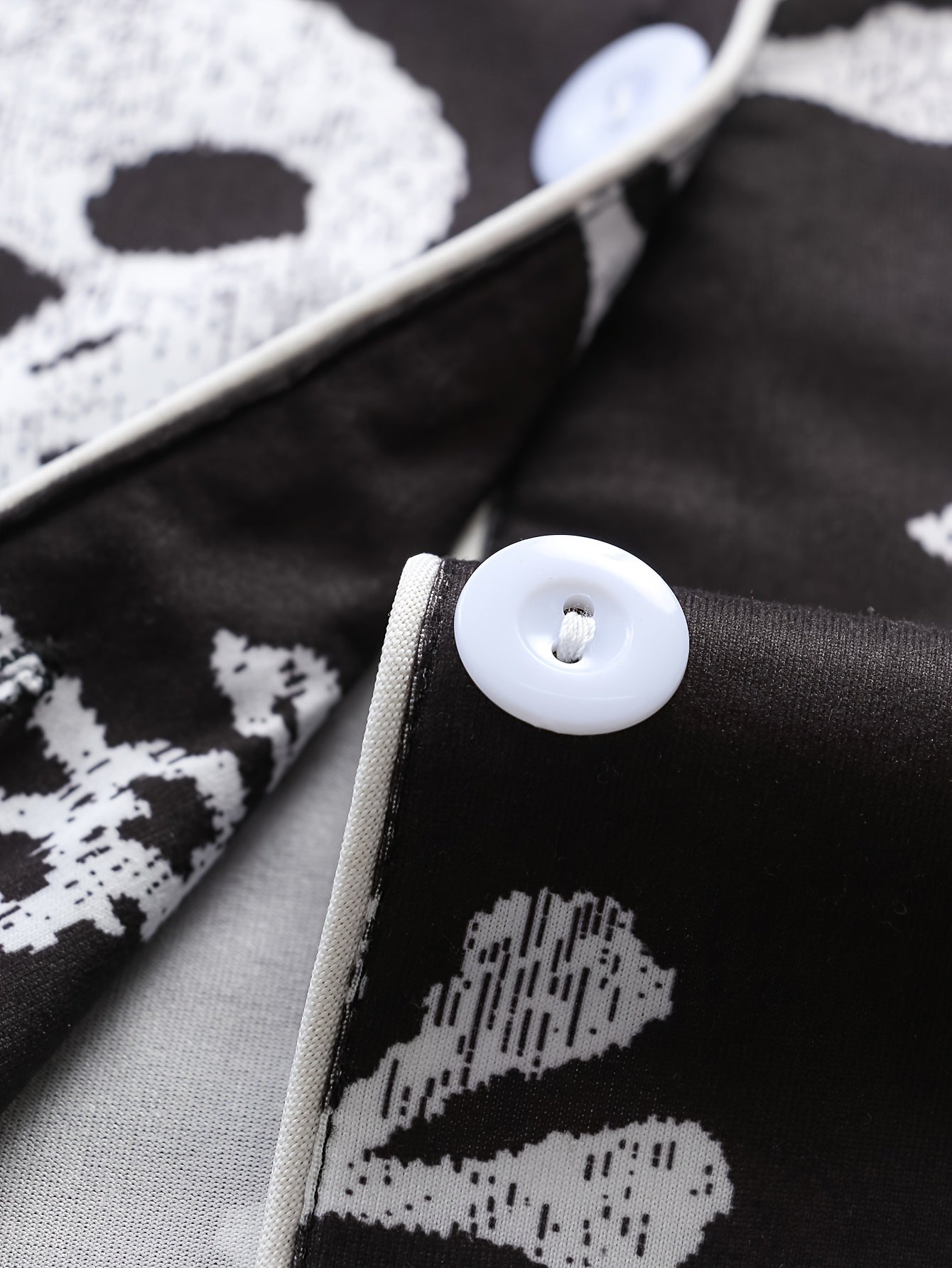 Two-Piece Skull Head Halloween Cartoon Pattern Women'S Pajamas, Turn- Collar Button Short Sleeve and Loose Comfortable Shorts, Elegant Women'S Pajama Set