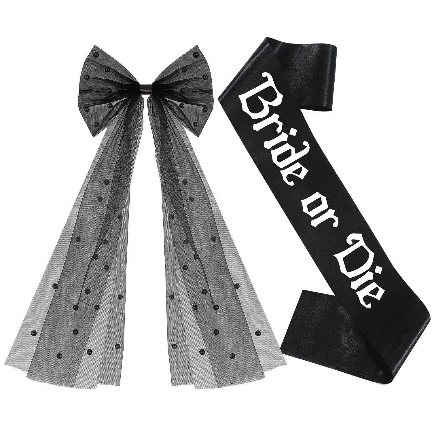 Women Girl Halloween Ghost Bride Black Wedding Crown Set Gothic Style Party Holiday DIY Decorations