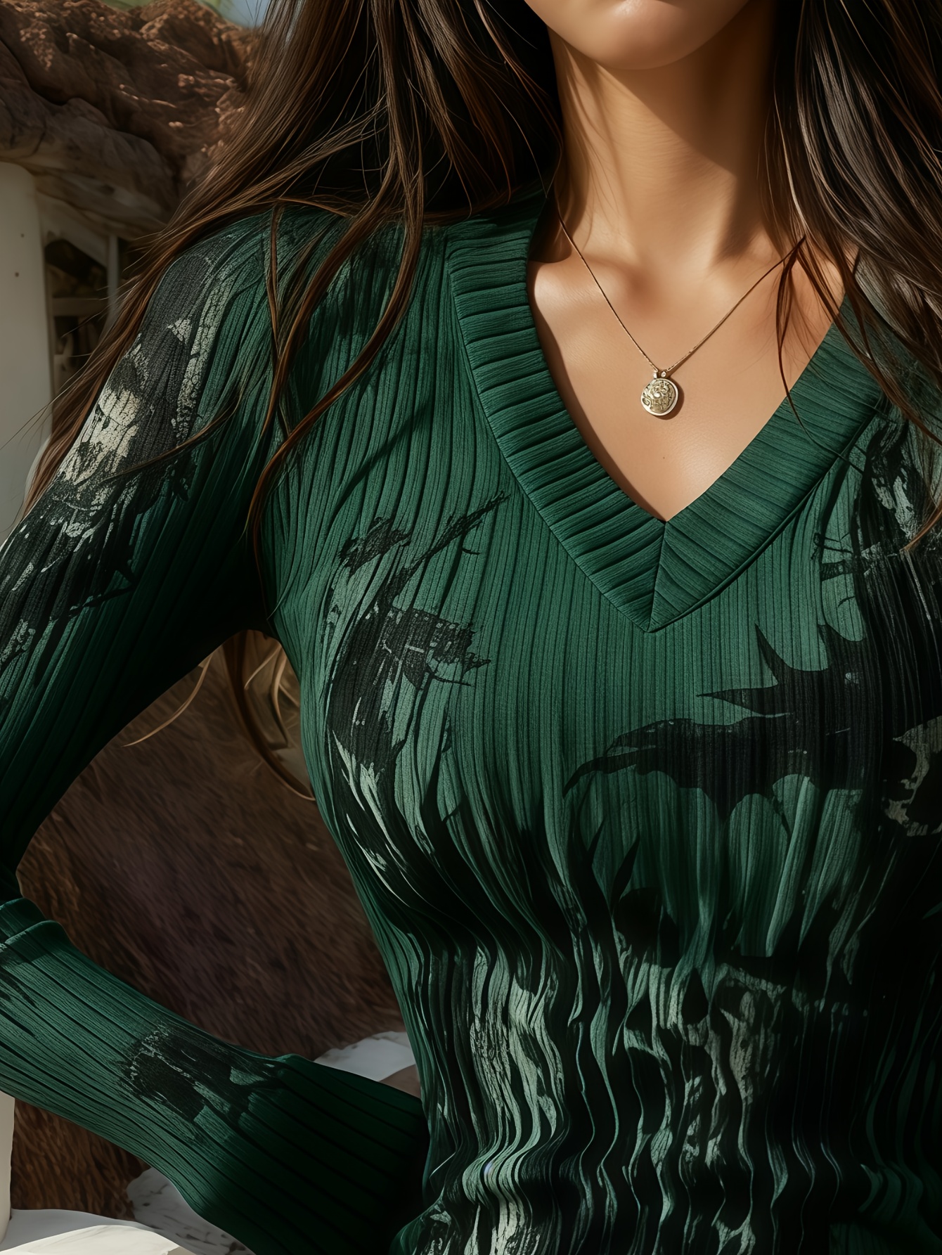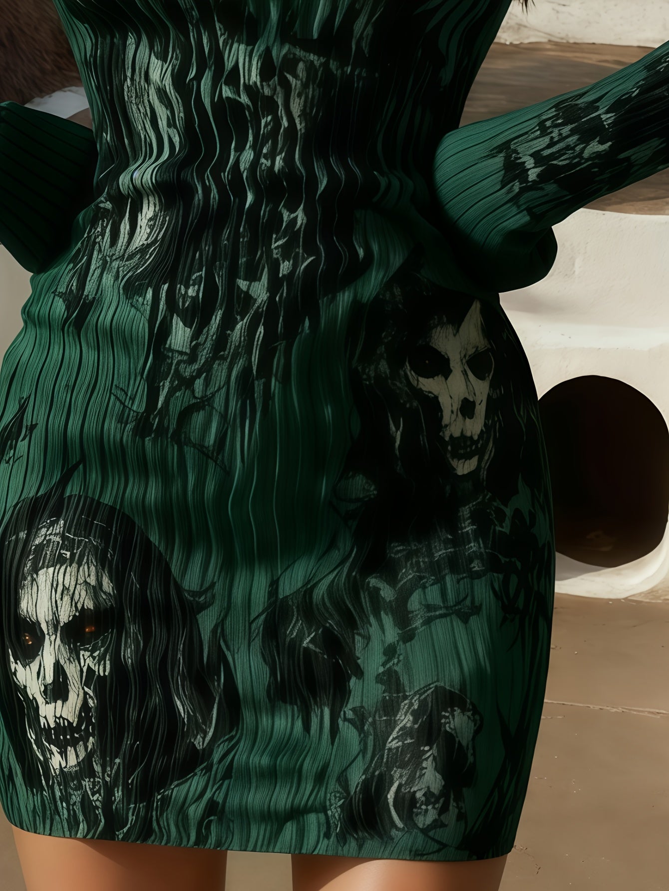 Women'S Gothic Skull Print V-Neck Long Sleeve Dress - Slim-Fit X-Line Hip-Wrapping Skirt, Short Length Elegant Streetwear for Fall/Winter, Halloween Party & Everyday Outfits, Comfortable & Sexy Casual to Semi-Formal Attire (N